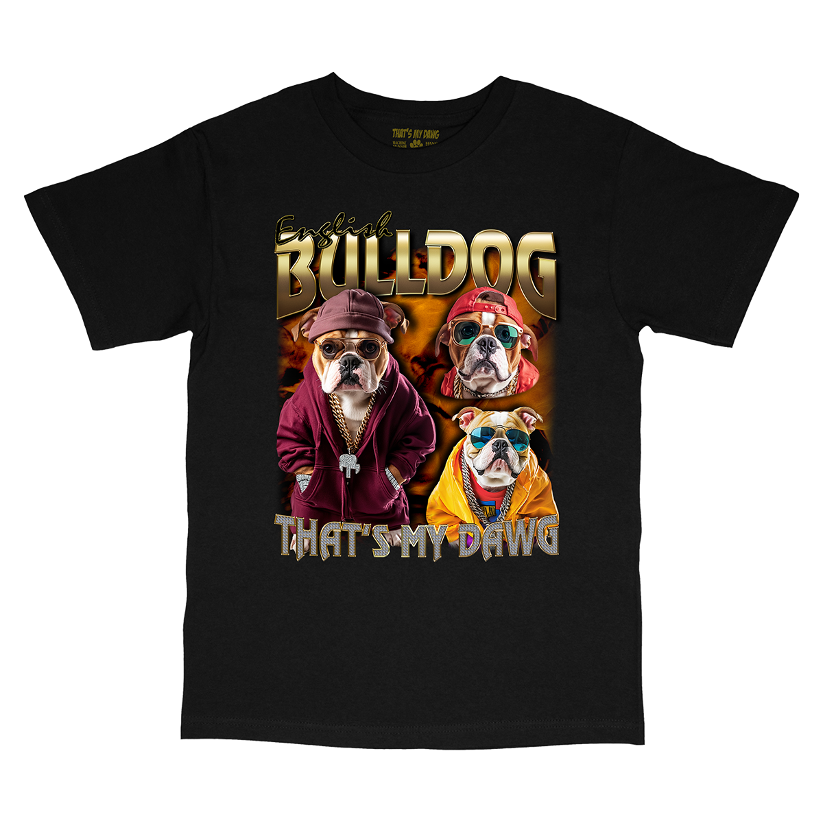 Step into nostalgia and dog-lover's paradise with our 90s Style English Bulldog design from That's My Dawg Brand. This vintage hip hop-inspired design captures the essence of 90s fashion with a vibrant English Bulldog design. Perfect for dog moms, dog dads, and pet parents who love hip hop and/or retro vibes. Available in T-shirt, Vintage T's, Long Sleeve, Crewneck Sweater, and various Hoodie styles, each garment is crafted for comfort and durability, ensuring a soft feel and lasting quality/print. Ideal for any English Bulldog lover, dog lover or hip hop fan seeking unique apparel like rap T's and bootleg rap pet shirts. Celebrate your love for dogs, hip-hop, and 90s style fashion effortlessly with our exclusive collection. Order your personalized pet tee today and showcase your love for dogs in a one-of-a-kind fashion statement!
