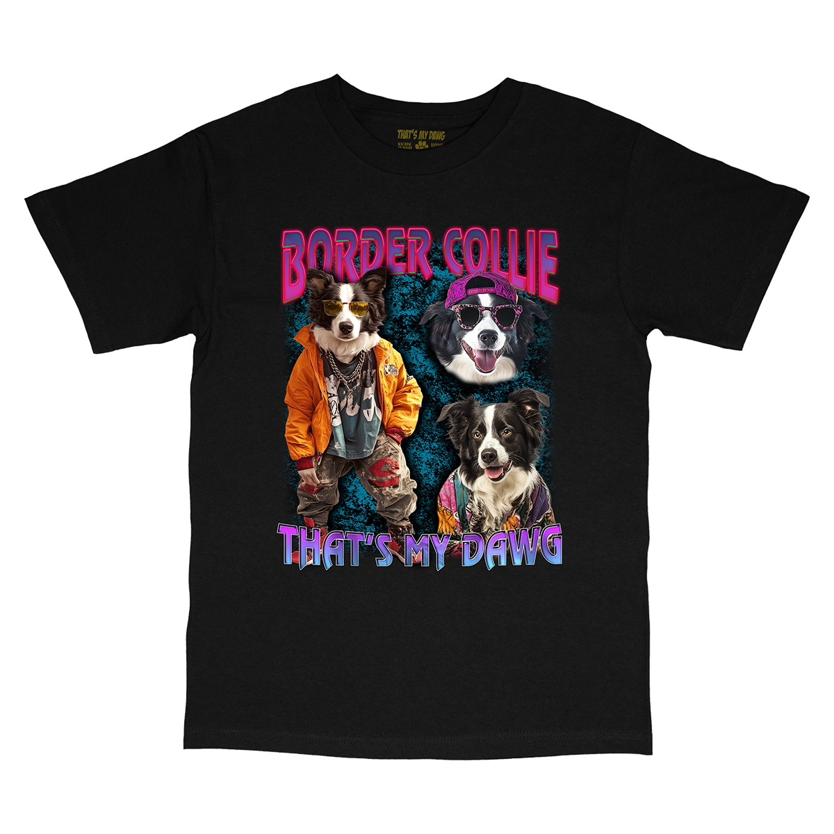 Step into nostalgia and dog-lover's paradise with our 90s Style Border Collie T-Shirt from That's My Dawg Brand. This vintage hip hop-inspired tee captures the essence of 90s fashion with a vibrant Border Collie design, perfect for dog moms, dog dads, and pet parents who love hip hop and/or retro vibes. Available in T-shirt, Long Sleeve, Crewneck Sweater, and various Hoodie styles, each garment is crafted for comfort and durability, ensuring a soft feel and lasting quality/print. Ideal for any Border Collie lover, dog lover or hip hop fan seeking unique apparel like rap T's and bootleg rap pet shirts. Celebrate your love for dogs, hip-hop, and 90s style fashion effortlessly with our exclusive collection. Order your personalized pet tee today and showcase your love for dogs in a one-of-a-kind fashion statement!