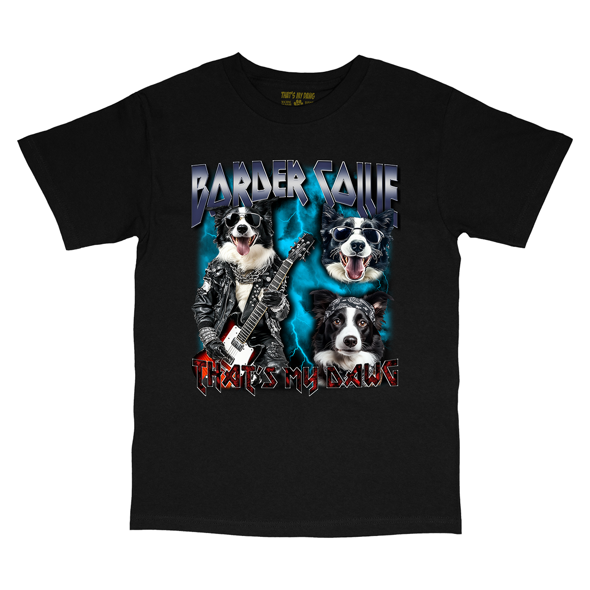 ROCK OUT WITH UR DAWG OUT with our 90s Style Border Collie Band T-Shirt from That's My Dawg Brand. This vintage band inspired tee captures the essence of retro fashion with a vibrant Border Collie heavy metal band design. Perfect for dog moms, dog dads, and pet parents who love heavy metal, rock and/or retro vibes. Available in T-shirt, Vintage T, Long Sleeve, Crewneck Sweater, and various Hoodie styles, each garment is crafted for comfort and durability, ensuring a soft feel and lasting quality/print. Ideal for any Border Collie lover, dog lover or music fan seeking unique apparel like band T's and heavy metal pet shirts. Celebrate your love for dogs, music, and vintage style fashion effortlessly with our exclusive collection. Order your personalized pet tee today and showcase your love for dogs in a one-of-a-kind fashion statement!