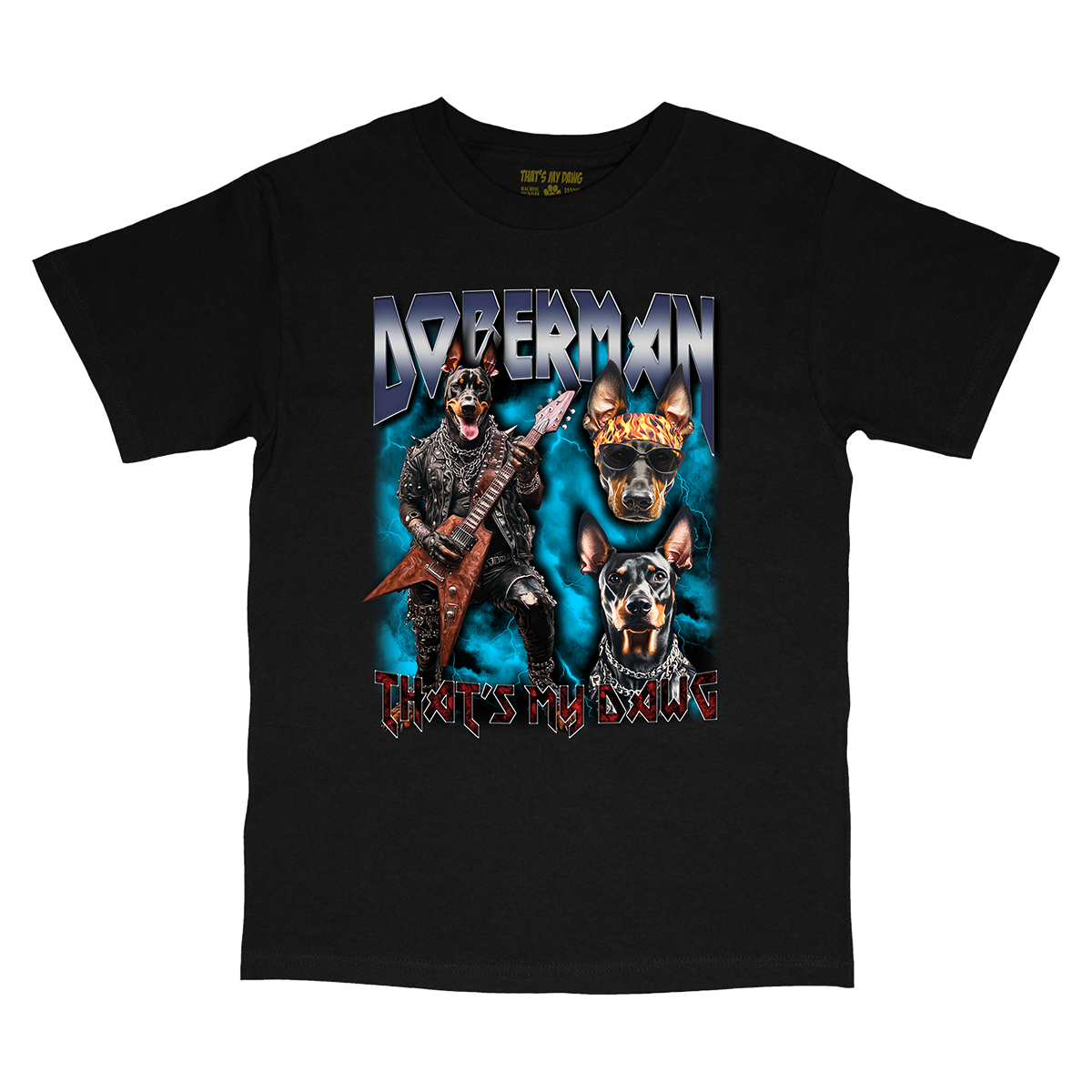 ROCK OUT WITH UR DAWG OUT with our 90s Style Doberman Band T-Shirt from That's My Dawg Brand. This vintage band inspired tee captures the essence of retro fashion with a vibrant Doberman heavy metal band design. Perfect for dog moms, dog dads, and pet parents who love heavy metal, rock and/or retro vibes. Available in T-shirt, Vintage T, Long Sleeve, Crewneck Sweater, and various Hoodie styles, each garment is crafted for comfort and durability, ensuring a soft feel and lasting quality/print. Ideal for any Doberman lover, dog lover or music fan seeking unique apparel like band T's and heavy metal pet shirts. Celebrate your love for dogs, music, and vintage style fashion effortlessly with our exclusive collection. Order your personalized pet tee today and showcase your love for dogs in a one-of-a-kind fashion statement!