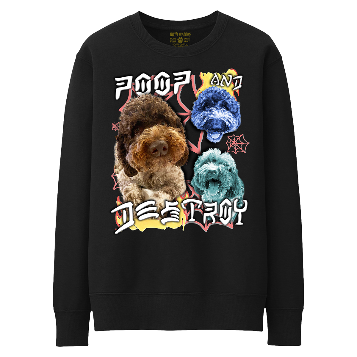 Custom Poop and Destroy Crewneck – Upload Any Pet, Friend, or Other Favorite Picture
