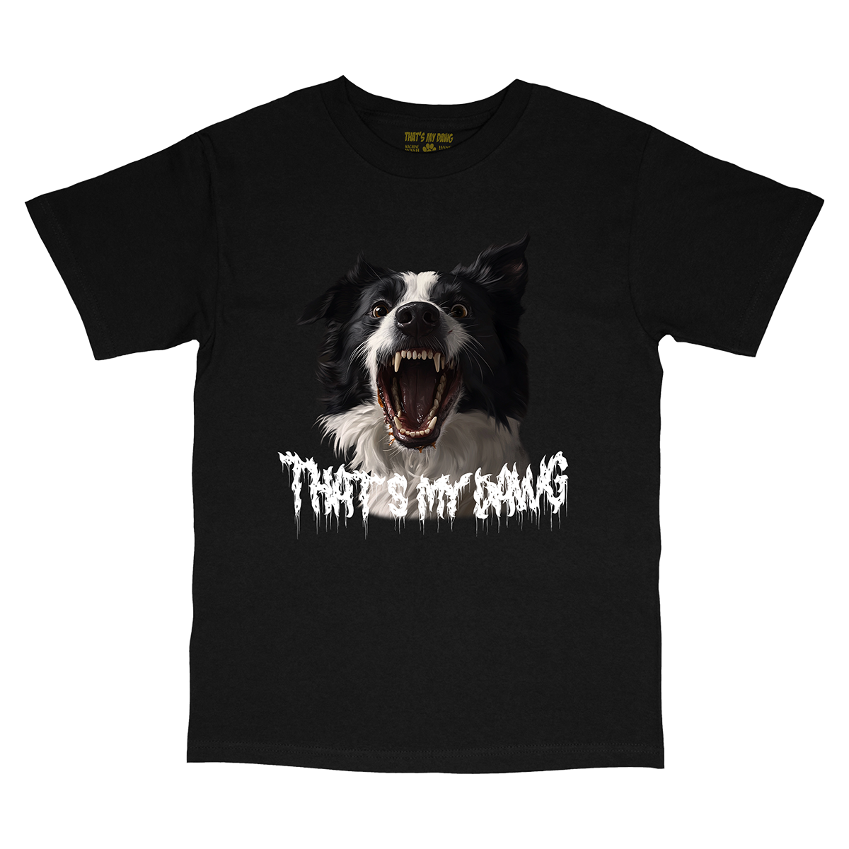 Introducing the Scary Dawg Border Collie design—your new must-have for showcasing the fierce side of man's best friend! This ultra-realistic design captures an intense growling Border Collie, complete with a vicious snarl. Perfect for those who want their pet to look as tough as they really are. Includes a "That's My Dawg" text that drips with attitude. Available on all garments we offer—T-shirts, Vintage Ts, Vintage Hoodies, Crewnecks, and more. Get ready to turn heads with this bold, terrifying, and unforgettable design!