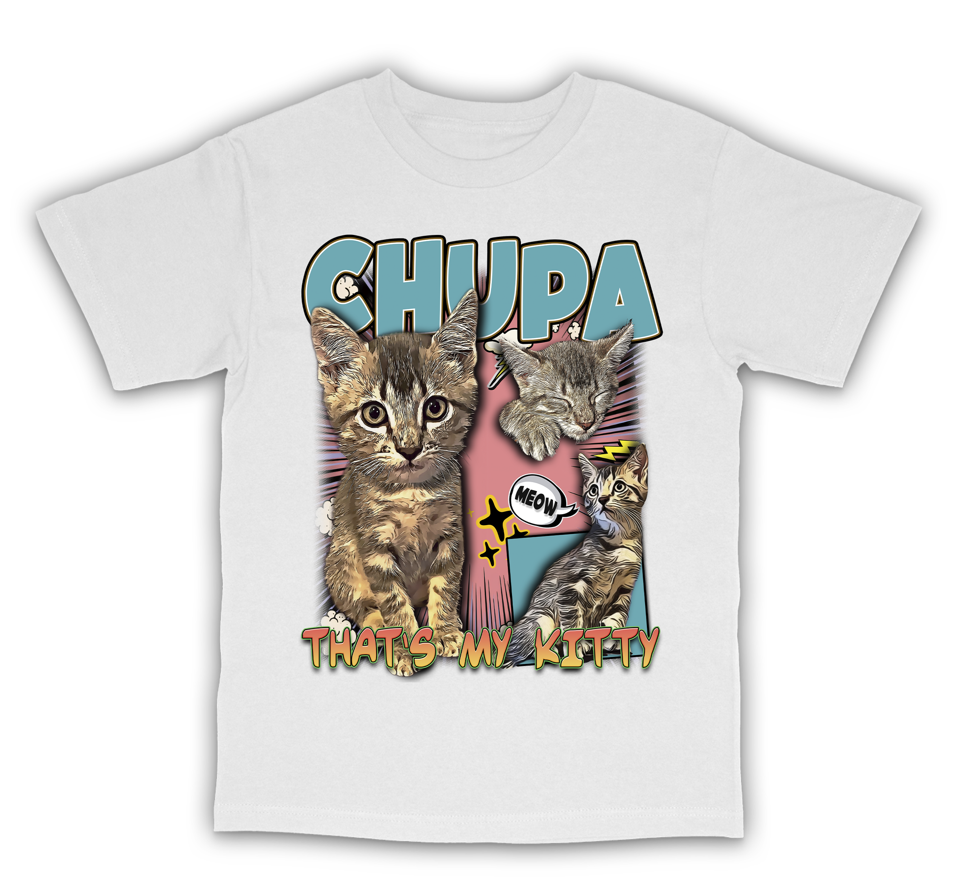 Upload any pet, person, or whatever you want, and we’ll create a playful, comic-inspired design that looks straight out of a superhero adventure!