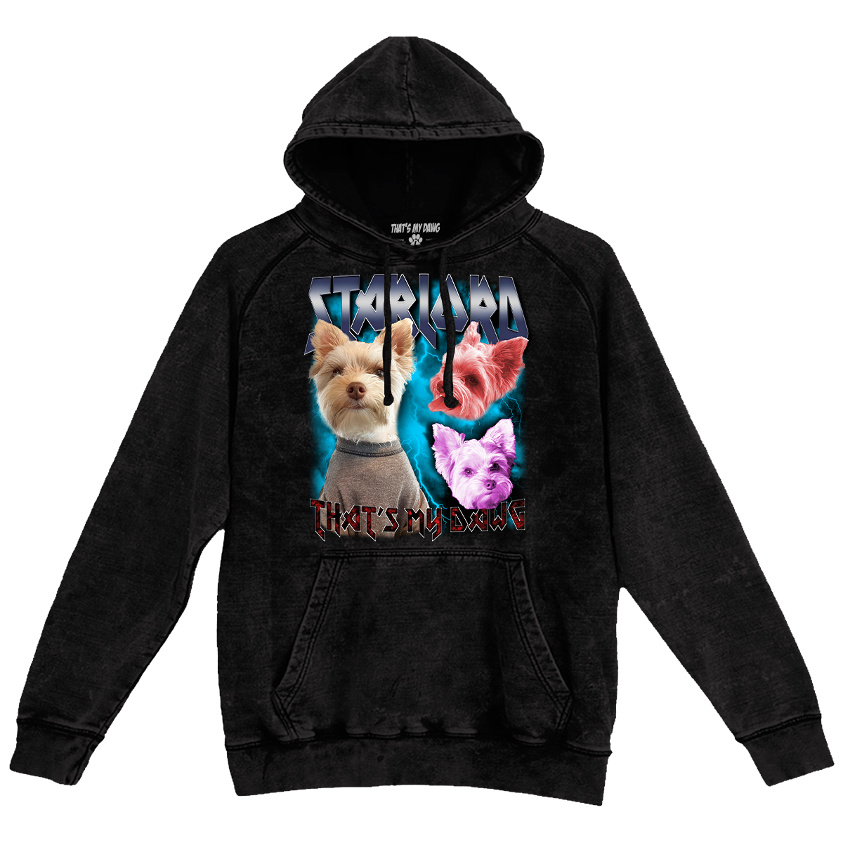 Upload any pet, person, or whatever you want, and we’ll create a custom heavy metal hoodie design with all the vintage vibes.